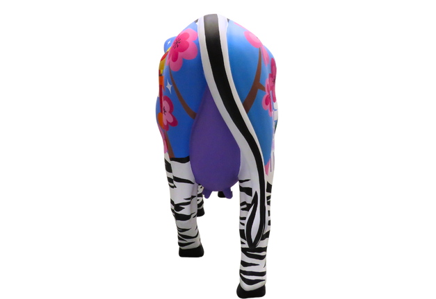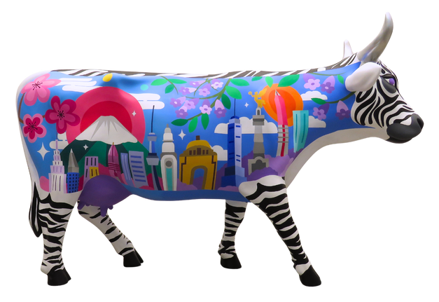 Esta vaca es una representación simbólica de la unión entre México y Japón, dos culturas que, aunque distintas, comparten una profunda conexión con la naturaleza, el arte y la creatividad. A través de una fusión visual de sus elementos más representativos, esta obra celebra el poder de la imaginación como un puente entre tradiciones y generaciones.